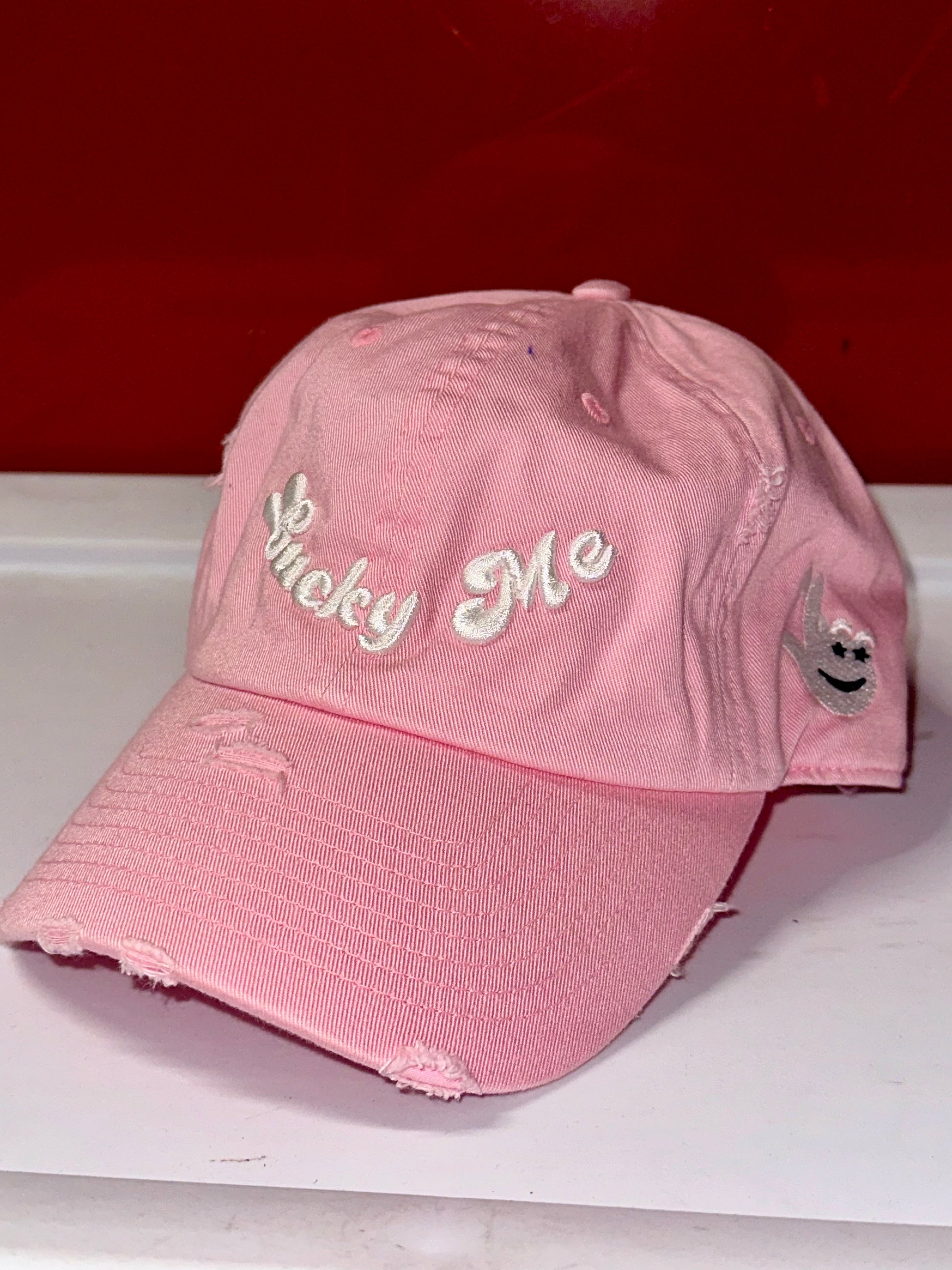 Turn heads with soft attitude in the Lucky Me Pink Distressed Cap — a bold blend of sweet and savage. With gentle distressing, standout white embroidery, and a cheeky smiley patch on the side, this pink hat speaks loud without yelling.