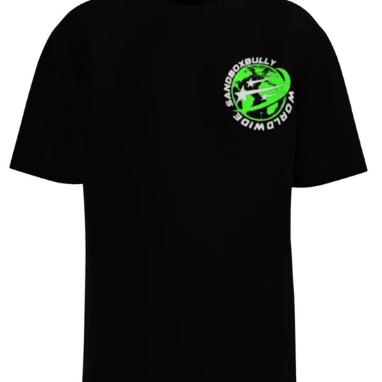 Built to move beyond borders. The Worldwide Globe Tee from Sandbox Bully brings international energy with a bold neon green global logo wrapping front and back. Centered around the phrase SANDBOX BULLY WORLDWIDE, this tee connects global vision with Brooklyn-born street style.